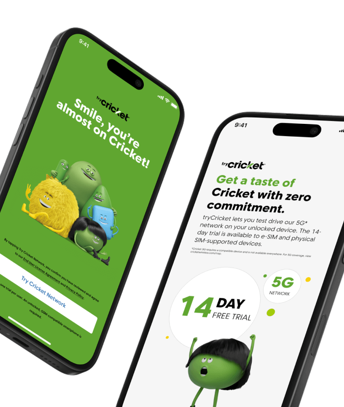 Cricket's fast and reliable 5G network is available on all plans, all you need is a compatible device.